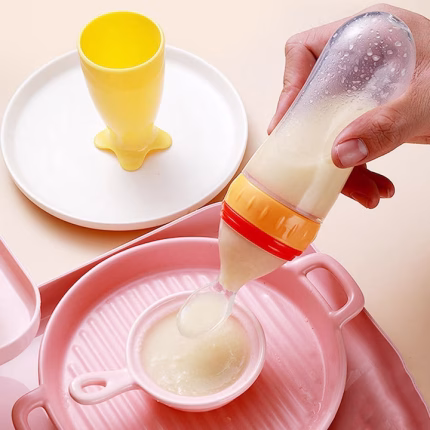 Set hranire copii Lingurita din silicon cu rezervor pentru diversificare roz si Suzeta pentru fructe si legume, roz