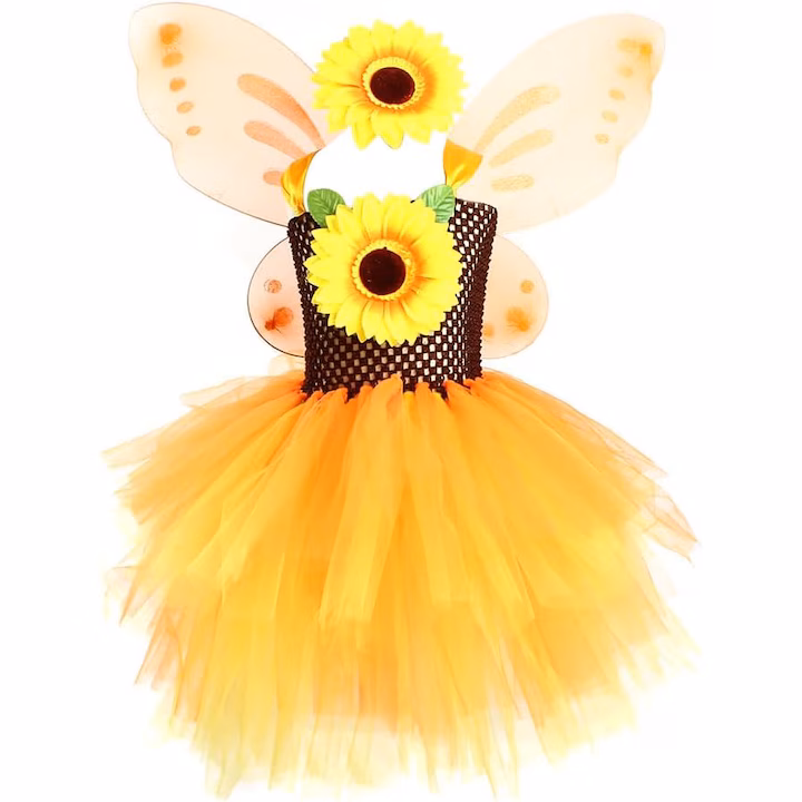 Costumul transmite bucurie, lumina si energie. Este ideal pentru serbari, sedinte foto, petreceri tematice sau pur si simplu pentru joaca. Imbina estetica florala cu magia unei zane, rezultand un look cald, solar si fermecator.