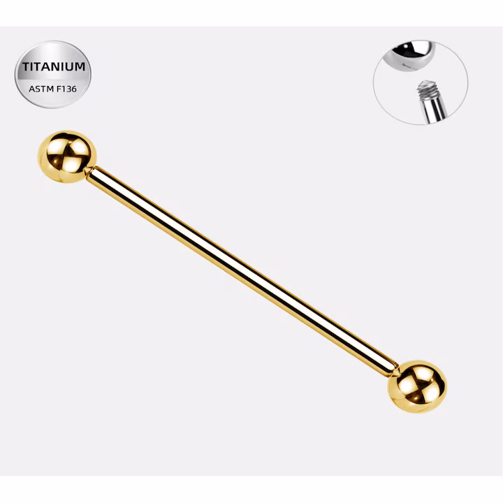 Acest barbell clasic si versatil este realizat din titanium ASTM F136, un material premium, hipoalergenic si extrem de rezistent, ideal pentru orice tip de piercing care necesita o tija lunga si sigura. Designul minimalist cu bile aurii ofera un aspect curat, elegant si usor de asortat, fiind potrivit atat pentru uz zilnic, cat si pentru un look discret si modern.