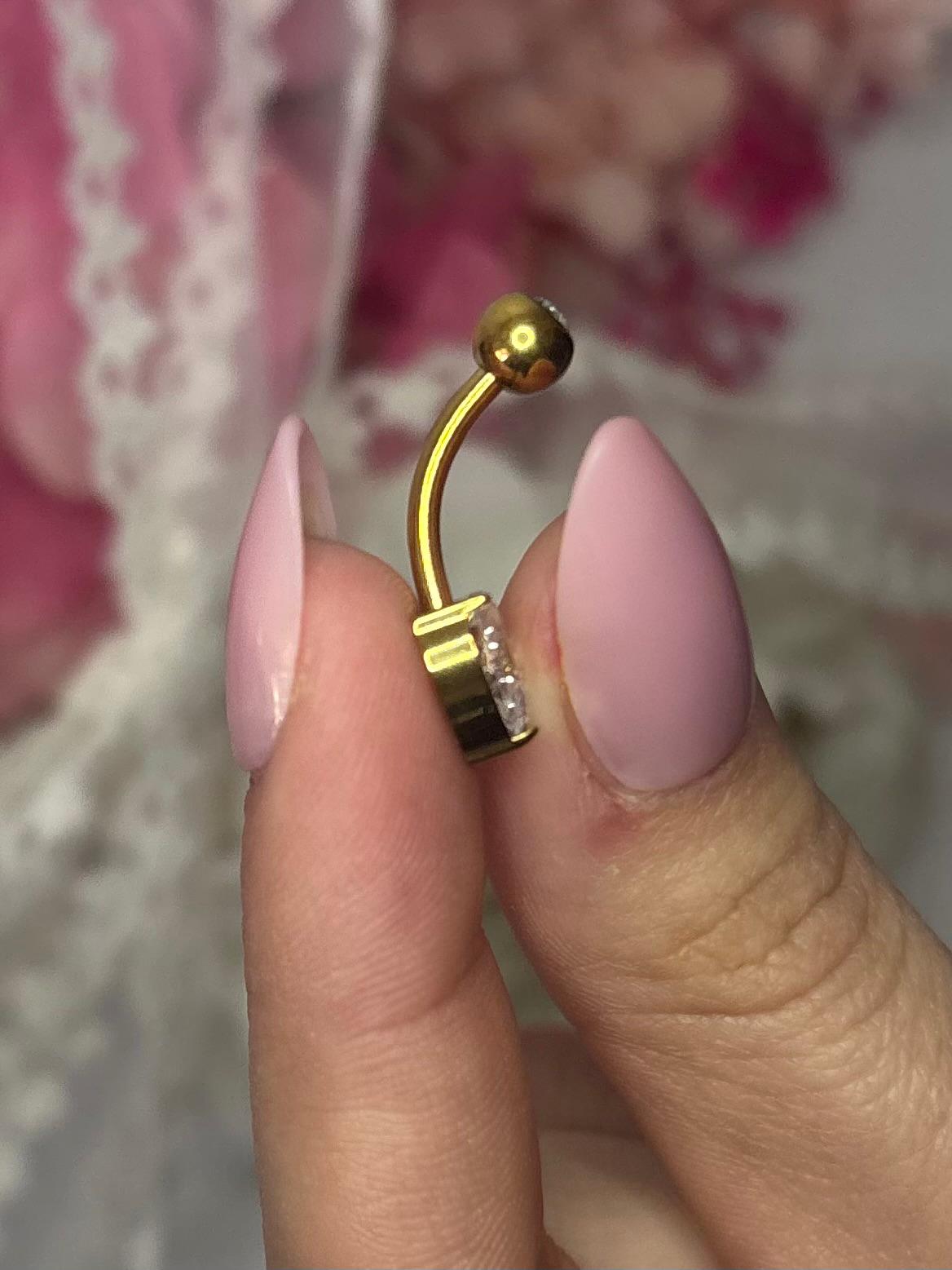 Piercing elegant pentru buric, realizat din titan de înaltă calitate (ASTM F136), cunoscut pentru rezistența sa și compatibilitatea excelentă cu pielea. Designul rafinat este evidențiat de un cristal zirconia strălucitor în partea superioară și un pandantiv în formă de inimă, decorat cu o piatră transparentă care captează lumina și oferă un aspect delicat și feminin.