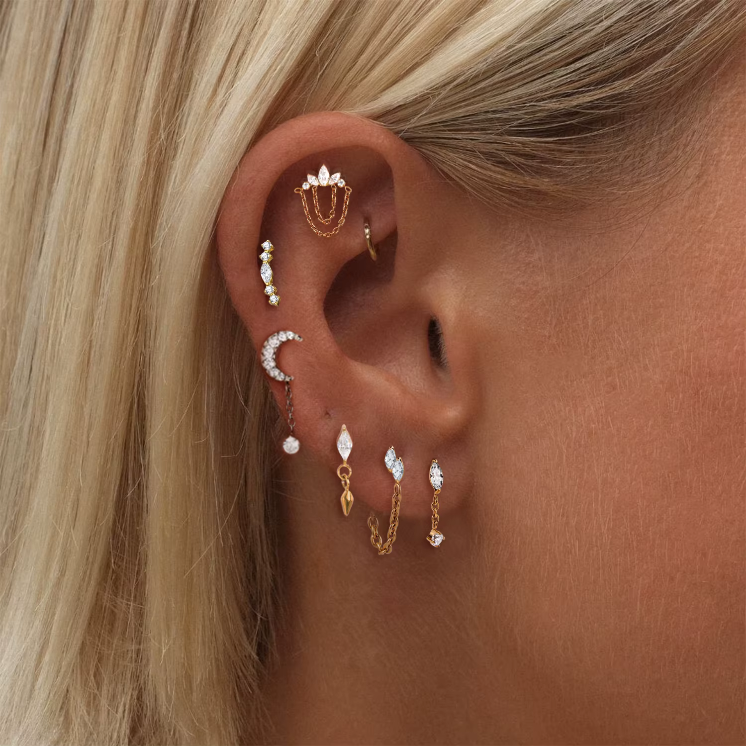 Potrivit pentru helix, flat, tragus sau lob, acest piercing este perfect pentru un look modern și feminin.