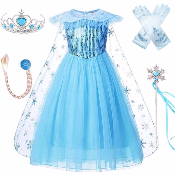 Rochie carnaval Elsa Frozen, cu pelerina si accesorii